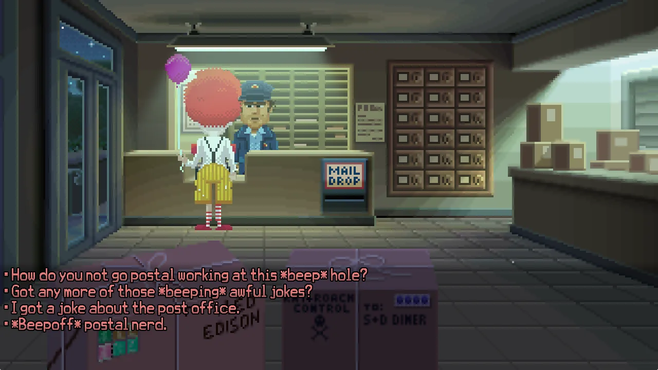 Thimbleweed County is large, with an open-world feel as you use a town map to visit places like a rundown circus and a hotel hosting a comic convention. Exploring each area is fascinating, but as the game opened up, I sometimes felt directionless with the overwhelming number of areas to consider when solving puzzles.