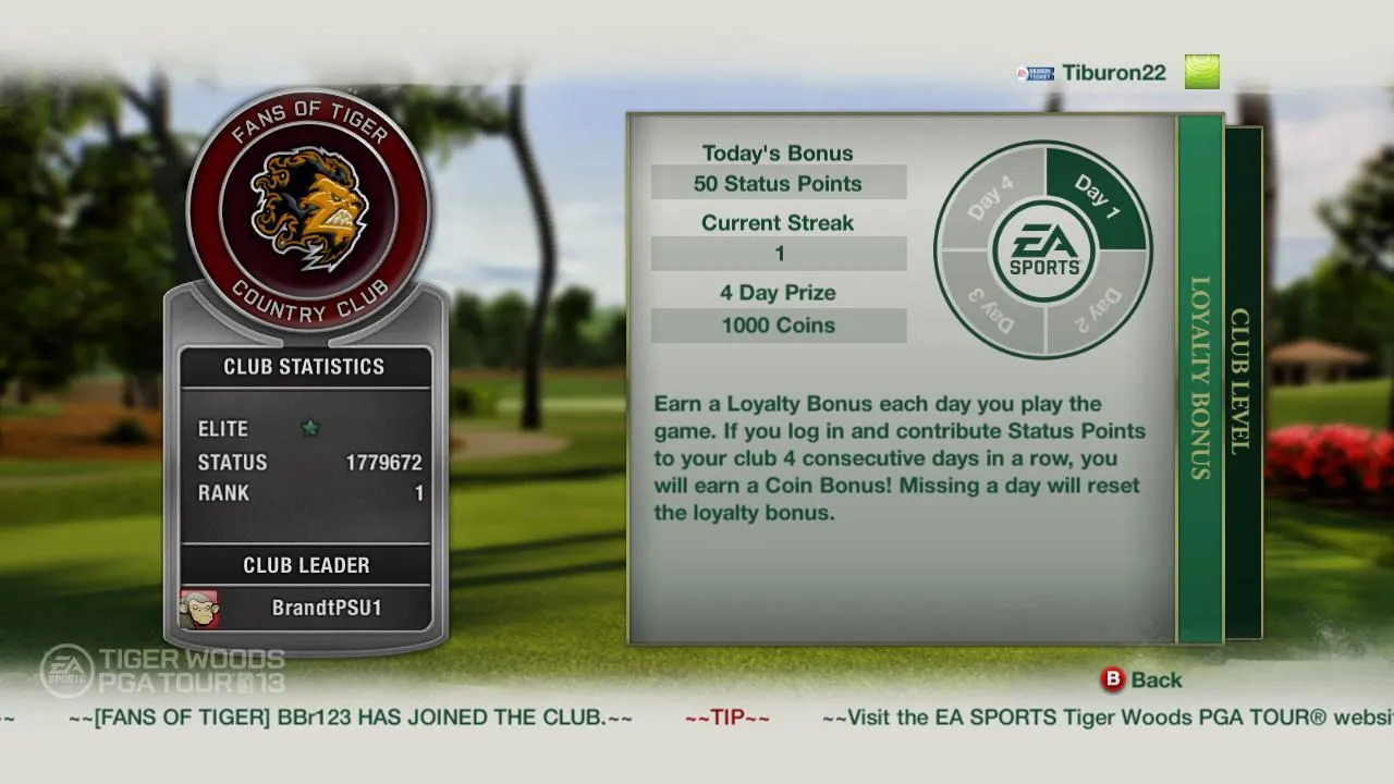 Tiger's new online Country Clubs combines community fun with your friends with the ever-popular merging of single- and multiplayer accomplishments. That's just the start of some of the game's new features.