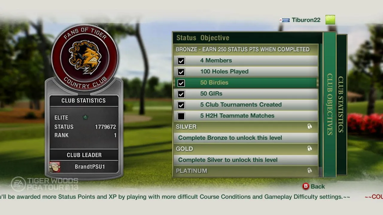- Everything you do in the game (online or off, any mode) earns you status for your club (which you can arrange among your friends, pick out a logo, etc.) by completing course challenges. The more status your club members gain, the more the club levels up. The higher the level of your club, the more coins you earn from objectives