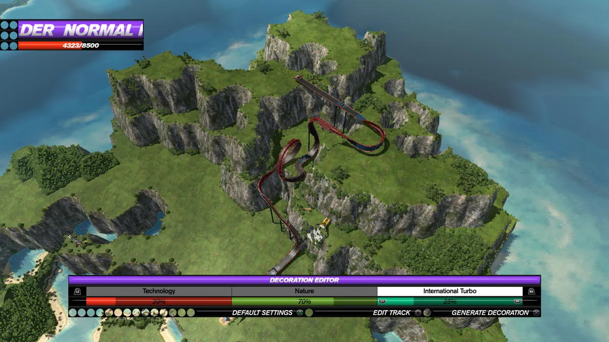 I messed around with the track maker mode, and it presented plenty of options. It greys out parts when you can't use them, which is good in that it saves you some time from trying out parts that won't go together, but sometimes I had no idea why they were greyed out in the first place. There is a handy random generator, but it'd be even more useful if you could edit these courses.