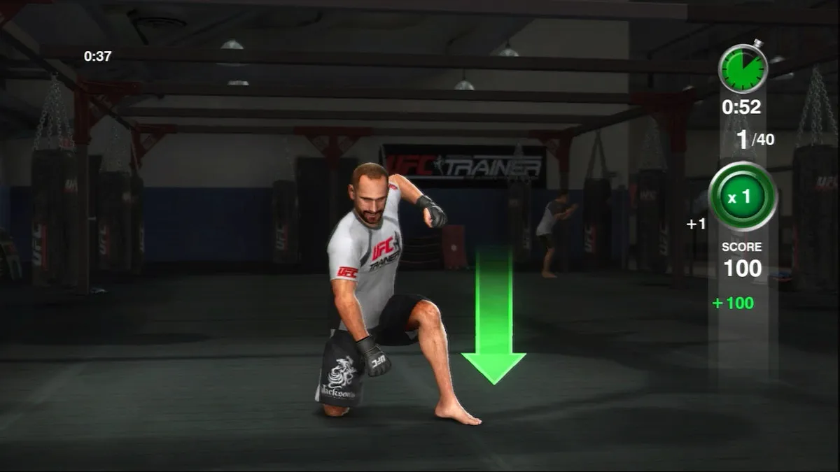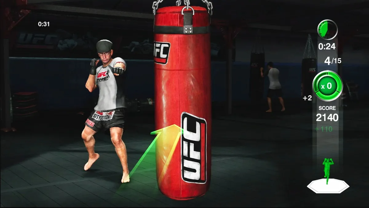 Games like Dance Central provide a good example of how games can track a player’s body movements while showing players how to improve their form, but UFC Personal Trainer’s biggest flaw is its halfhearted implementation of motion tracking. UFC doesn’t measure your body posture or judge you on the accuracy of the punches you throw. In fact, the advice given by your trainer is often so vague you don’t know if your stance is accurate or if you’re leaving yourself exposed while throwing an elbow. Floor tracking is even worse; at least a third of my push-ups and sit-ups never registered with the game. In short, very little differentiates these in-game workouts from a DVD fitness video. In fact, these routines are often less intense than many of today’s popular fitness programs, such as P90X.