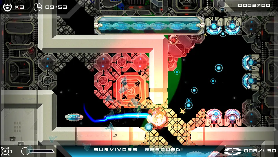 The control options surrounding teleportation are functional, but imperfect. Every other aspect – firing bullets, steering the ship, and dropping bombs – feels fluid and seamless. Touching the walls with your ship does not result in instant death, which further adds to the ease of control.
