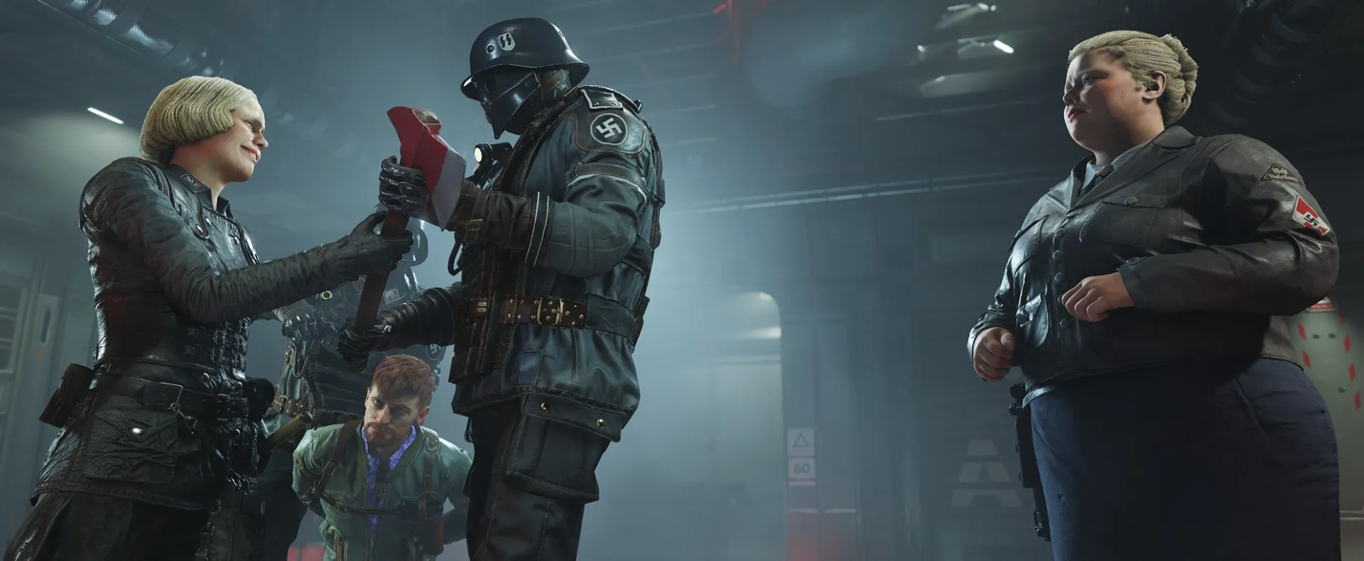 The New Colossus kicks off on a grim note, with B.J. awaking crippled after the events of the first game. You are in the middle of the action almost immediately, roaming around a U-boat in a wheelchair and blasting Nazis as you go. From there, the game gets zanier and more ambitious. I rode a giant mechanical fire-breathing dog of death chasing armored troops down the streets of New Orleans. I infiltrated an airship with the power to level a city. The New Colossus is constantly upping the ante and making the most of the locations you visit, like Reich-occupied Roswell, where the Ku Klux Klan walk arm-in-arm with Nazis and talk about the importance of Americans taking their German lessons. These sequences create a compelling world, going to great lengths to sell the horrifying nature of the Nazi regime’s iron-like grip on America. From detailed and beautiful propaganda adoring walls to background sequences with characters talking amongst themselves about their struggles and secrets, Wolfenstein II goes all-in on making its terrifying world a breathing place filled with atrocities and towering, architectural wonders.