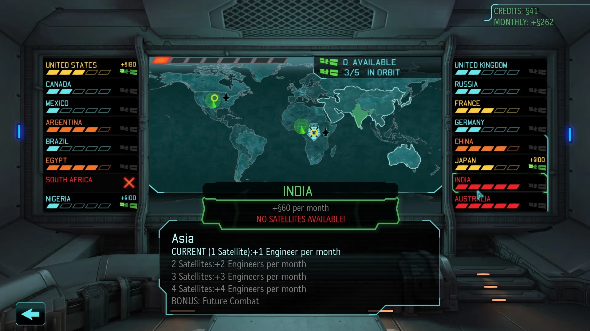 Preventing Earth from succumbing to invading extraterrestrials takes place in two phases. In the strategic view, you must manage limited time, money, and material resources to outfit your soldiers with up-to-date equipment, expand satellite coverage across the globe to keep civilian panic levels under control, invest in XCOM’s underground infrastructure, and extract whatever secrets you can from captured alien artifacts. This layer is more of an interstitial break between the randomly generated tactical missions, where the true heart of the game lies.