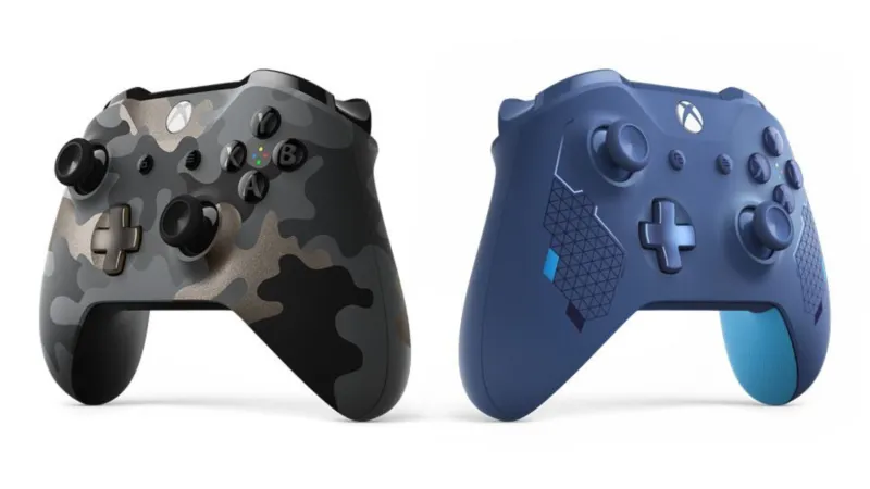 Two new stylish Xbox One controllers are on their way. One is with a Sports Blue color scheme and the other is Night Ops Camo, both pictured above.
