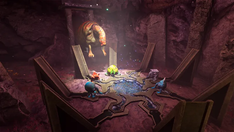 The Trebhums have an unwieldly name and oddball appearance, but I grew quite fond of the little aliens during my hands-on demo with The Eternal Cylinder. The critters look a lot like Q-bert, and they face an existential threat in the form of a massive rolling object that is intent on moving forward – whatever is in its path, be damned. The Trebhums don’t start out able to do much more than flee, but they can eat different foods to manipulate their bodies in helpful ways. Chomp on a grasshopper-like creature, and you sprout springy legs to help you jump over walls. Cold weather got you down? Eat furry prey, and grow a fluffy coat. The unrelenting cylinder is far from the most surreal element in Ace Team’s game. As I progressed, I faced enemies including a giant pod thing that split in the middle, revealing a set of chompers. Weirder still was a torso and arms fused into a car. When I honked at it, it awoke from its slumber and chased me around – and the light from its headlights removed the modifications I’d picked up along the way. There’s also a narrator who would be right at home in a nature documentary, commenting on milestones and doing his part to contribute to the overall strangeness of the whole presentation. It’s coming to consoles and PC in 2020.