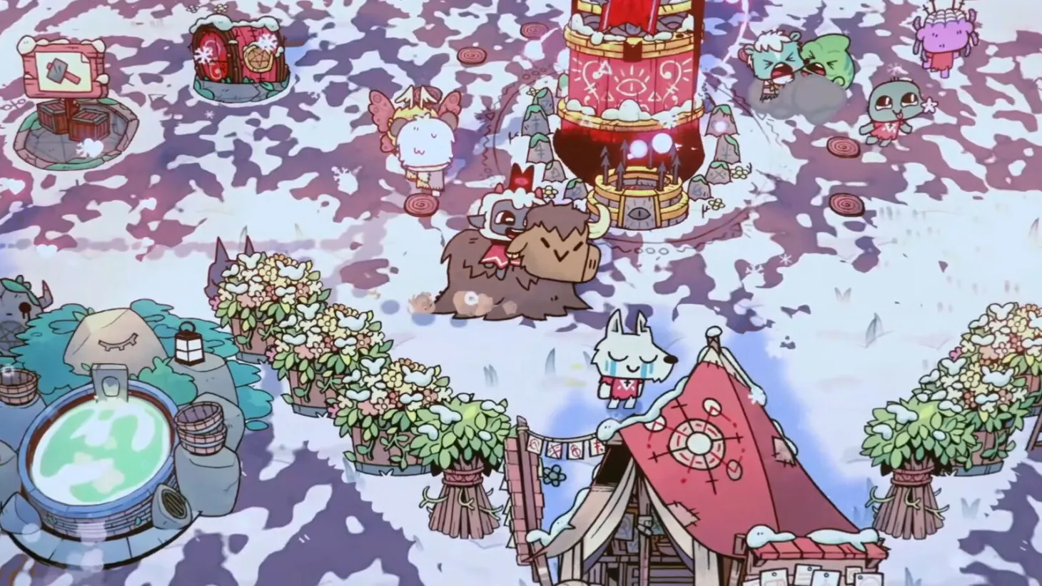 The game will see players survive a frigid blizzard biome to rebuild a fallen town. Constructing shelters keeps cult members warm, and you can breed animals to provide warmth-giving wool. Woolhaven features two new dungeons and a fresh slate of enemies to take down.
