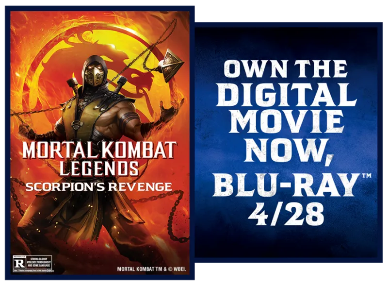 **Please Note: Mortal Kombat Legends: Scorpions Revenge is rated R and as such you must be a US resident 17 years of age or older to win. Minors will need parents permission to accept prizes. Full rules available with each entry method below. Entries will be accepted until 11:59 PM CST on May 8th, 2020 with final drawing to take place on or after May 9, 2020.