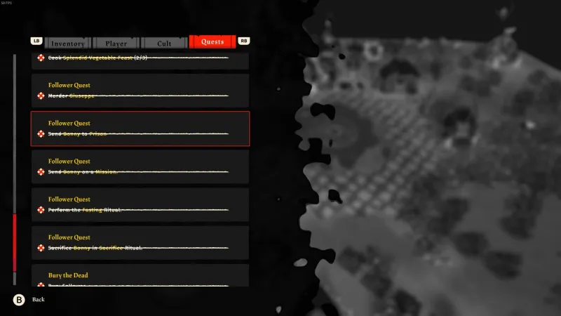 You’re the leader, after all. I mention this because many of your followers will ask you to do tasks for them to raise their loyalty to you. Sometimes you’ll be asked to feed another follower a bowl of poop. Occasionally, followers will ask you to murder someone or sacrifice them in the temple. If you decline a follower’s sub-quest, you’ll lose 35 faith, but sometimes, this is worth it because, for example, murdering a follower could cost you even more faith. Weigh your options before deciding what you want to do, and don’t feel like you need to do what your followers ask of you every time.