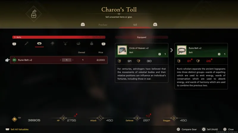 In the early hours of FFXVI, and even up until about halfway through, you can safely sell the weapons and gear you’re no longer using. But you’ll later find that Blackthorne has weapons and gear he can craft for you using weapons and gear you (hopefully) already have. Especially in the late portions of the game, he’ll have some legendary stuff to craft, and you’ll need various weapons and pieces of gear, as well as tough-to-acquire crafting materials, in order to craft it. Save yourself the trouble of refinding or rebuying weapons and gear you’ve sold by holding onto them. Plus, you’re only going to get a couple of thousand gil max when you sell your weapons and gear – just go complete a hunt for 10,000 gil or more instead of selling your stuff.