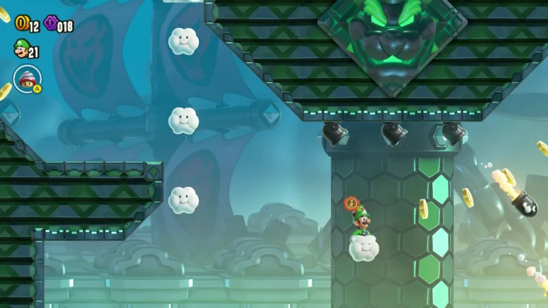 - During the Wonder Effect, you can reach the third coin by holding down on the left side of the platform and walking to the coin when you see it, allowing you to go underneath the ledge.