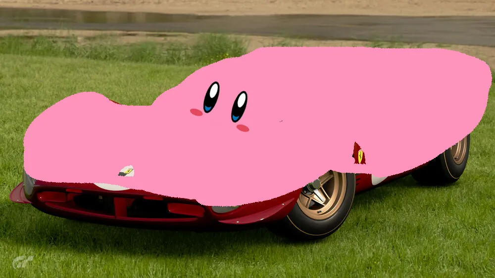 That's why I took the liberty of looking up some of GT7's best cars (I think) to render Kirby eating them, thus putting our collective curiosity to bed once and for all. Yes, this is what I chose to spend my work hours doing instead of something productive. I'll level with you. I don't know anything about cars or car culture. But I do know for a fact that hardcore Gran Turismo fans are an easy-going bunch that loves lighthearted, humorous angles on their favorite racing franchise. This one is for you guys.