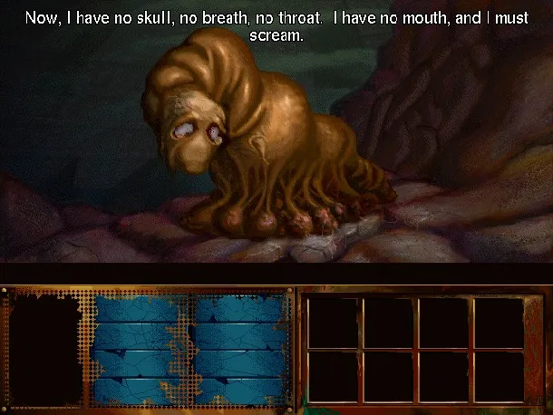The giant creature late in the game that you must violently enter reminded me of the visualization of the creature in the I Have No Mouth, And I Must Scream video game adaptation. Would you consider that story an inspiration?