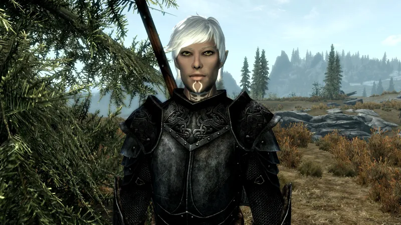"Fenris, a former slave in Morrowind, served the House Dres for most of his youth. His Dunmer masters forced him to endure a Daedric ritual which resulted in the unique magic markings on his skin. One day he was finally able to escape, and he ended up in Skyrim."
