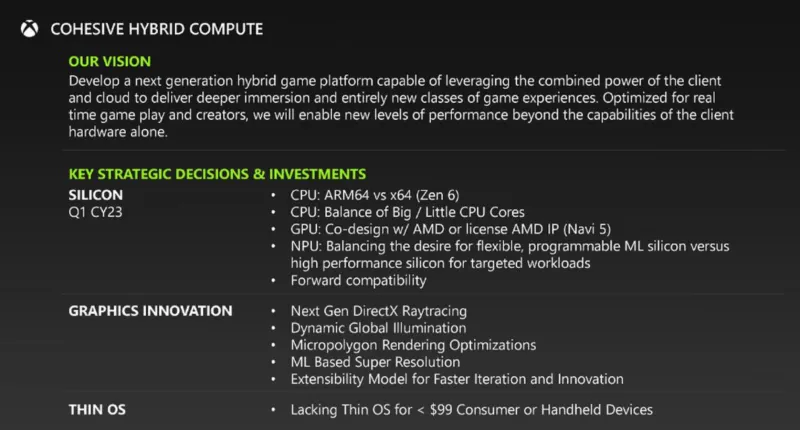 This document stops short of revealing what the console is, what it could be called, and what it might look like one day. However, it reveals some key details about its architecture and how Xbox views it as a hybrid game platform that uses the cloud.