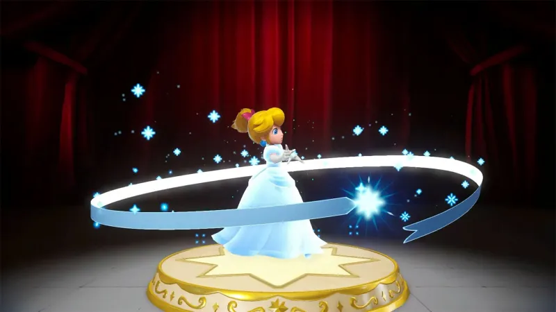 One interesting thing the Direct did reveal was that when Peach steps on a special pedestal, her outfit changes, going from her usual pink dress to a bright, light blue dress that seems to indicate she's powered up in some way. But the reveal ends there, with Nintendo promising more information at a later date. The last game to star Peach as the main character was 2005's Super Princess Peach for DS.