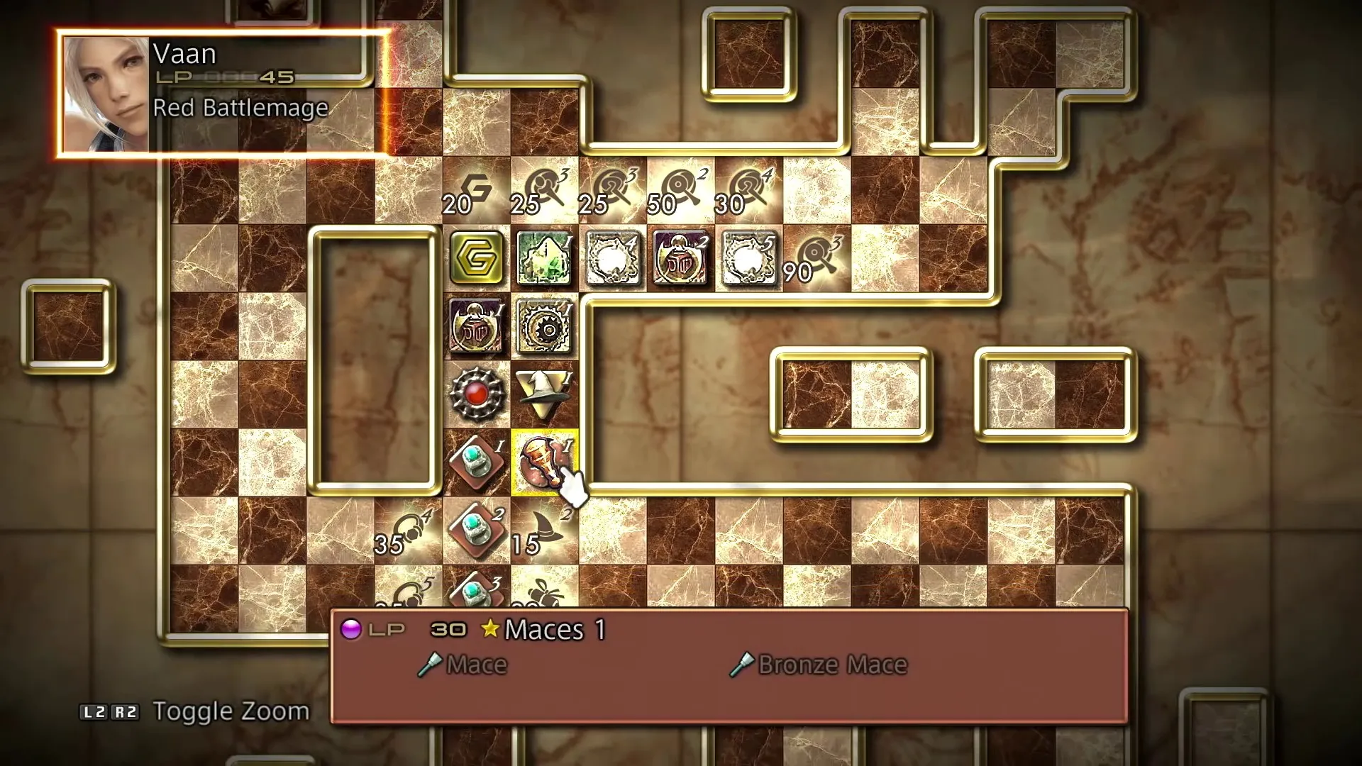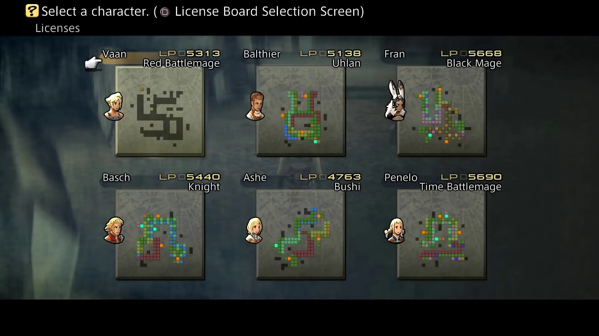 Rather than unlocking nodes on a static skill tree, progression in Final Fantasy XII is an immersive minigame. Upgrades are recorded through job licenses – spaces on a sprawling checkered board that unlock ultimates, weapon and armor sets, and stat augmentations. These licenses correlate with assigned jobs (or classes). Each job has its own board, but some may share licenses that, when purchased, overlap. For example, my Balthier is a White Mage and Machinist. Both job boards have “swiftness” licenses which lessen cooldown timers. By buying one swiftness node on the White Mage board, I can access adjacent abilities on the Machinist board.