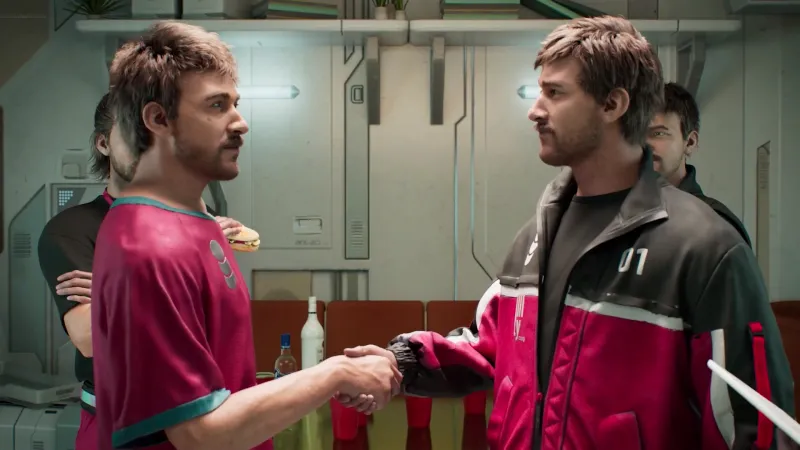 Jan Dolski, the main character, turns to The Alters, or alternate versions of himself that differ from him in ways that will help them all survive. The Alters each have different skills and character traits, so even though they all look like Jan, they'll fill specific roles in the mission to get home. The trailer shows Jan and The Alters' ship, a giant wheel-like craft with a series of shipping container units held together at the center.