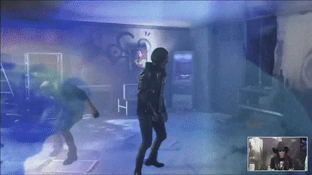 The narrative will follow Dane, a deaf young man who's attempting to find a kidnapped dancer. As implied in the reveal trailer, The Quiet Man mixes its gameplay with live-action cutscenes. In one scene, the screen turned blue and an FMV face covered some of the punching action.