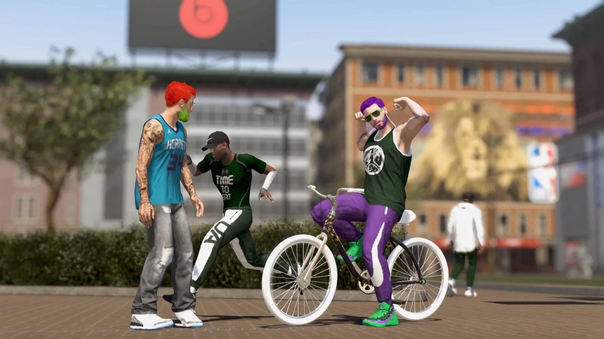 "Right now, there's like 25 or 30," Bishop says. "Those will be thrown out one or two each day, and we'll kind of change it up over the course of the year. Do you remember Ruffles Four Pointer from last year? We're doing different ones like that. There's Court Conqueror, which is one of my personal favorites. It turns that whole half of the park into a medieval castle. It's surrounded by walls, but what's cool is when you are in there, you are teaming up with other people to play against A.I. players from the different NBA teams. They'll be six different courts for six different teams. They'll be like three Lakers on one court, three Sixers on another. Your goal is to try and beat all six of those teams to get big prizes. All these events are different ways to earn not just VC, but points toward breaking your cap and leveling your character up, and a bunch of exclusive clothing. We're really trying to find ways to give back."