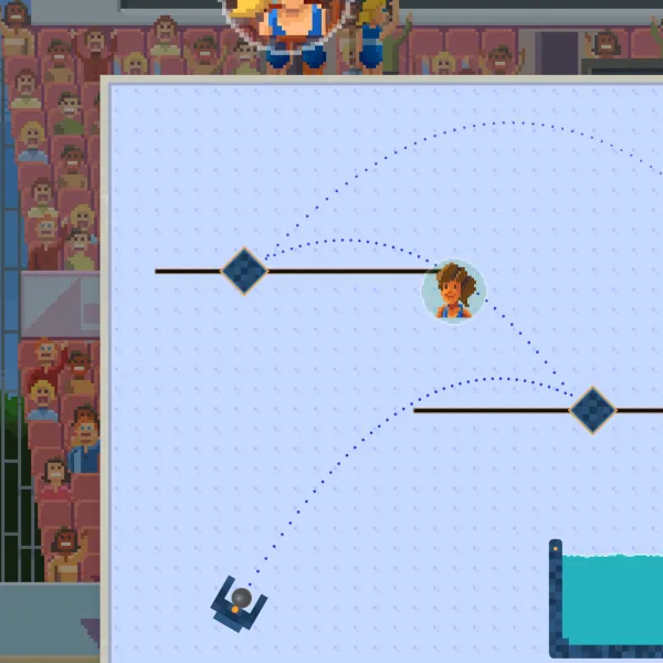 A later story, The Athlete, follows a young girl who is forced to make difficult decisions to stay competitive as a diver. The early puzzles are straightforward; there is a dotted line shooting off your character and you have to adjust the angle of your launch so she’ll land in a pool of water. However, when things get dicey and more competitive in her story, you’re asked to make more complicated ricochet shots that require careful planning. When she still struggles to compete, that’s when her puzzles, and her story, get interesting.