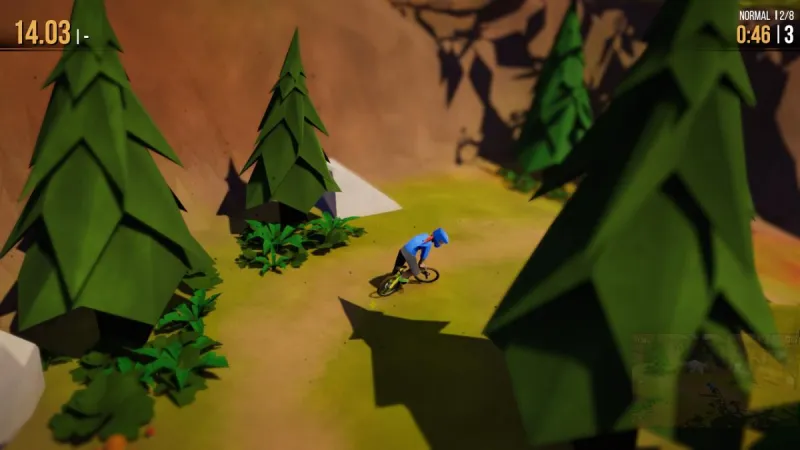 Your main goal is always to reach the bottom of the mountain, but each location has an assortment of side objectives. Some are goal-based, like One-Life-Mode, which reduces you to one life; others are time-based, challenging you to race down the mountain as fast as possible. Completing these side objectives unlocks different bikes with varying stats. Some have lower stability and agility but offer higher shock absorption, which allows you to land trickier jumps when navigating shorter, off-the-beaten-path routes. Others can reach higher acceleration but have lower grip.