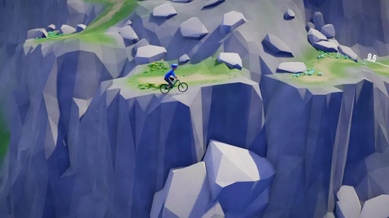 The paths down each mountain are not straightforward – every slope offers branching paths that convene at checkpoints where you save your progress. If you crash, you restart at your last checkpoint at the time you initially reached it. You can take the clearly defined, safer routes where you’re less likely to crash, or try to find hidden shortcuts by prayerfully hopping down the sides of cliffs. Shortcuts aren’t always easy to discover and require some experimentation (a.k.a. crashing), but they significantly cut down the time it takes to reach each checkpoint. Lonely Mountains: Downhill will be a paradise for speedrunners who enjoy the challenge of finding fast routes.