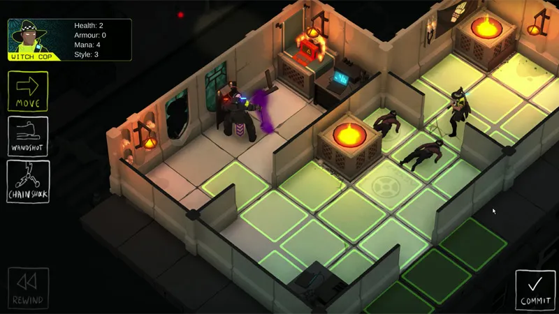 Tactical Breach Wizards is a small-scale strategy game that involves using a squad of magical characters, like Riot Priests and Witch Cops. Unlike many strategy games that involve nail-biting decisions and crossed fingers, Tactical Breach Wizards has a generous rewind feature that lets you experiment with your options and take back moves that don't turn out the way you expect.