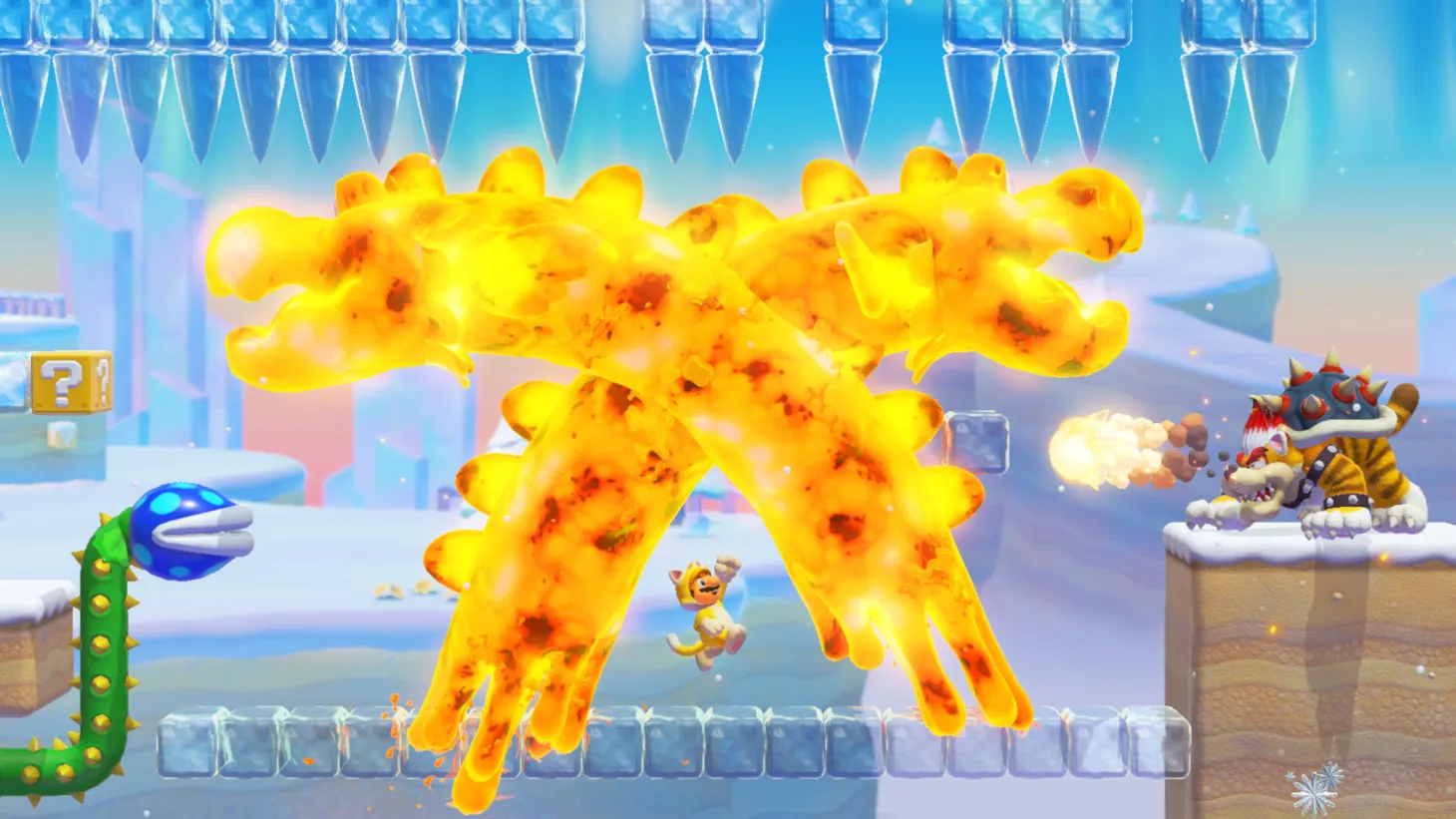After playing a bit with the styles from the original Mario Maker, I swap over to Super Mario 3D World. Unlike when I jump between Super Mario Bros., Super Mario Bros. 3, Super Mario World, and New Super Mario Bros. U, selecting 3D World gives me a warning that all progress on my current stage will be lost. This is due to the stage elements in 3D World being so different from the other game styles. After agreeing to that condition, I'm given access to an expanded suite of elements to create with, including the cat bell power-up, new enemies like Skipsqueak, and my personal favorite Super Mario 3D World element to this point: the Koopa Troopa Car. When you encounter this revved-up turtle, you can stomp on him to take his car, then embark on a joyride across the level, plowing through enemies and riding over small gaps, until you run into enough walls to smash it. I can't wait to create a Koopa Troopa Car obstacle course.