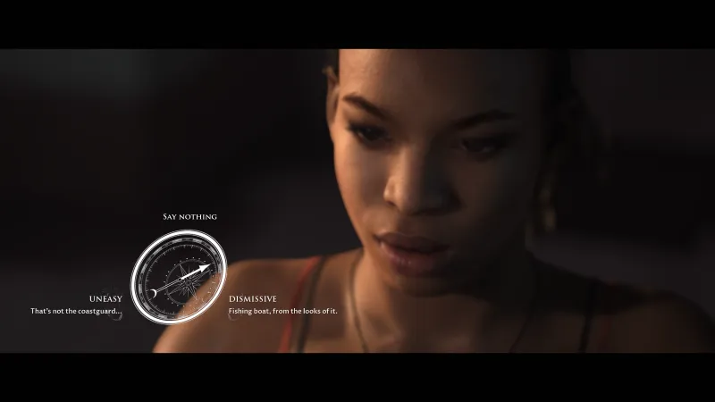 After a time skip, players take control of a group of friends looking to do some deep sea diving looking for a World War II airplane that has gone undiscovered for years. Two brothers, Alex and Brad, are preparing for the dive by having a conversation about their upcoming venture, with one player taking each side of the conversation and choosing the dialogue options from a radial menu. Brad can choose to be nervous, prompting the way Alex responds, and maybe telling you a little bit about how the players would view this situation outside of the game.