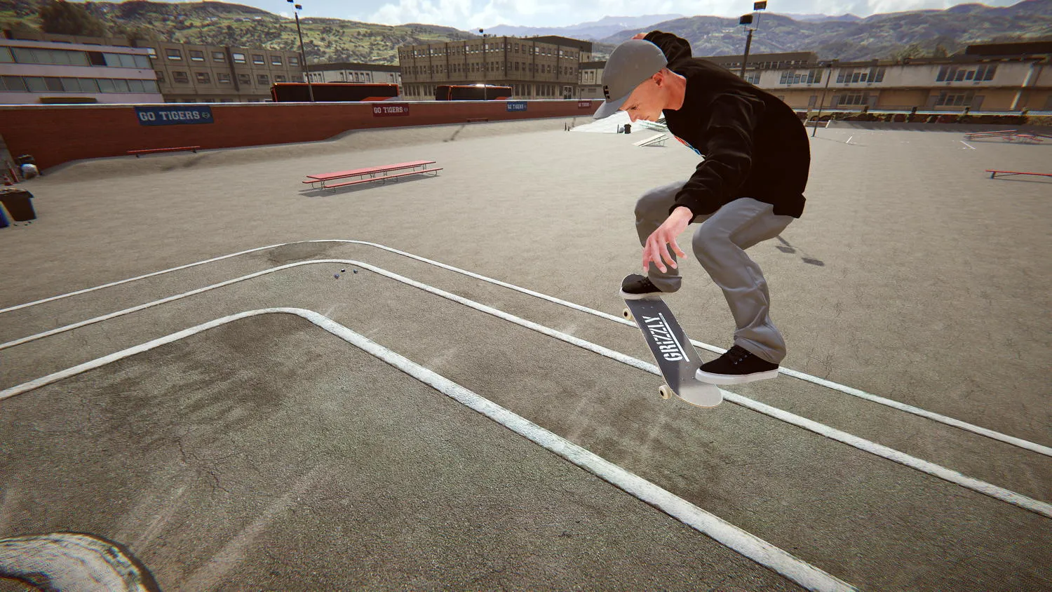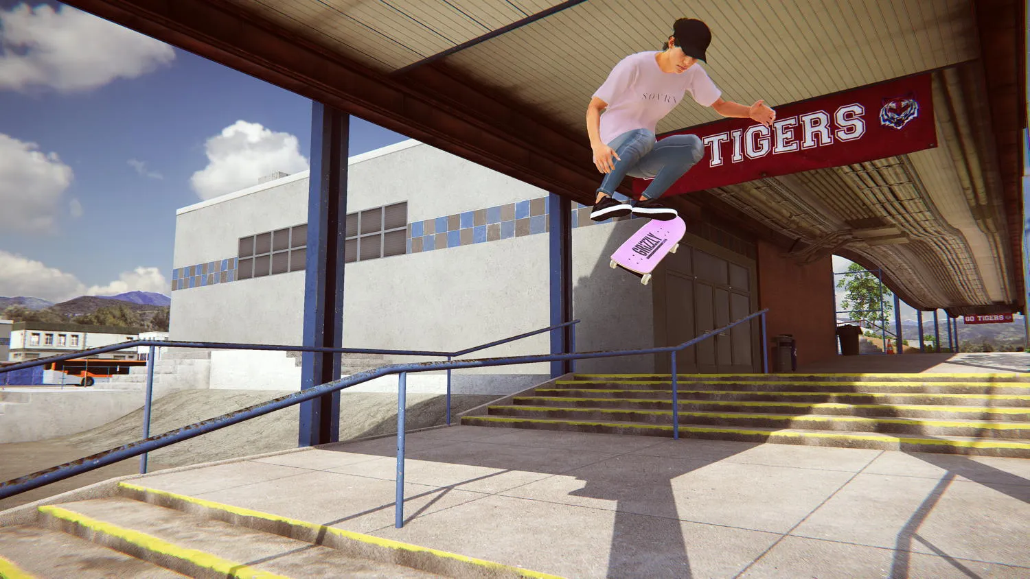 We looked at the new Easy Day Academy, which is both an introduction to the world (including tutorials) as well as a great level. It’s a sprawling campus containing the greatest hits of southern California school design – or at least as we imagine it as skaters. Concrete banks, benches, planters, rails, bike racks, and stairs are all in abundance, and the spawn-drop tool is handy if you want to explore a spot more out-of-reach, like the top of the school.