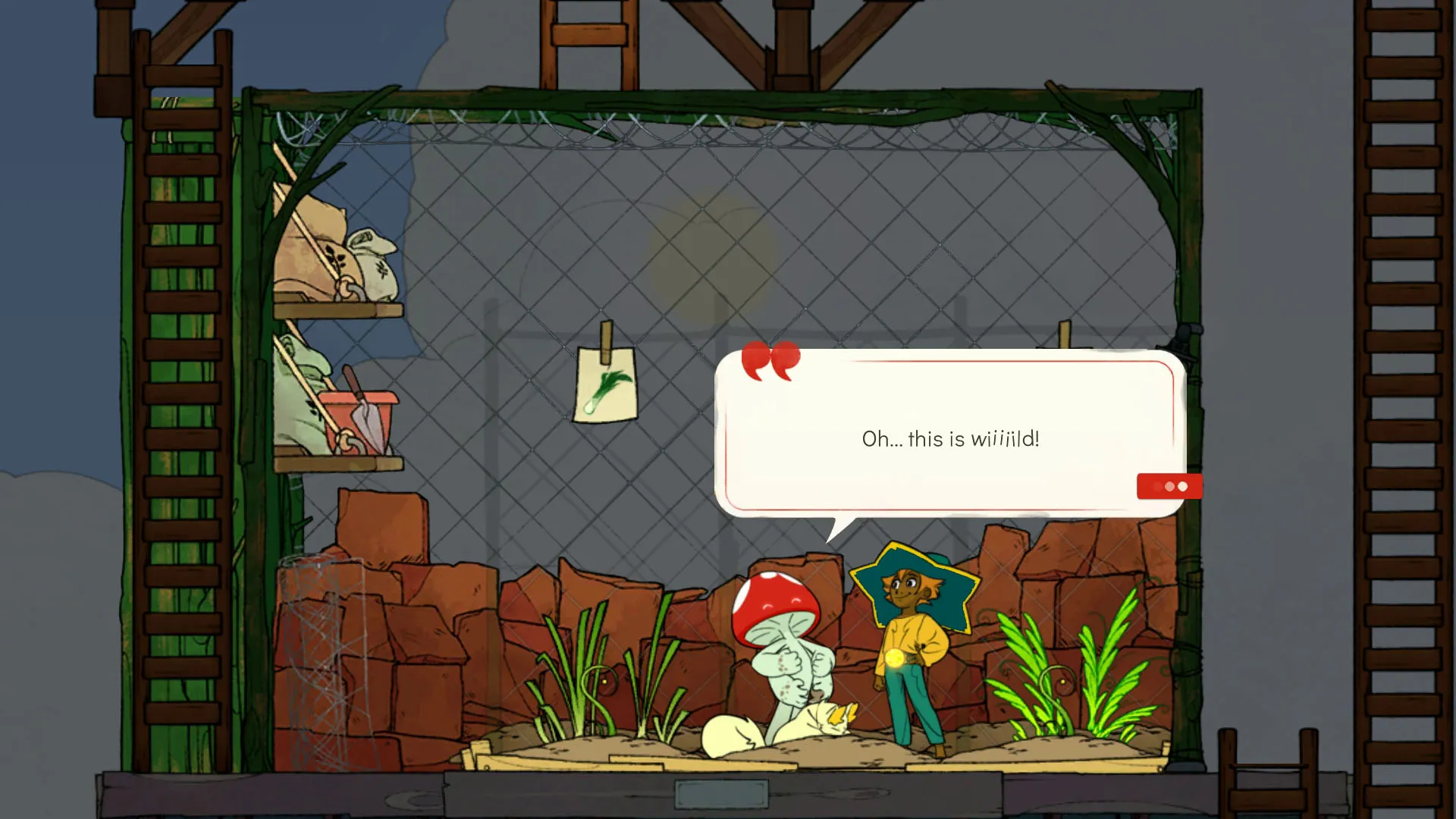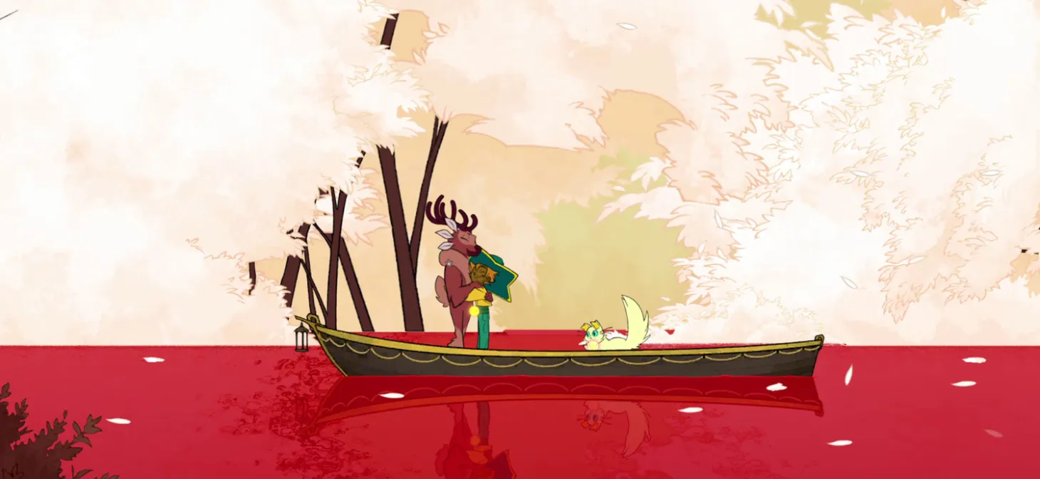 Guérin has jumped me to a point about 30 hours into the game, so I’m seeing a well-developed boat. Stella and Daffodil don’t start with all these amenities; your options are limited at first, but as your needs and capabilities grow, so does the settlement on your ship. Players progress gradually by exploring islands, gathering resources, and completing requests from spirit friends – most of whom take forms drawn from the natural world. Some of my passengers include anthropomorphic versions of a deer, a mushroom, and a lion. They each have different needs, asking Stella to do things that ultimately help them reflect on their lives and finish their journeys. I didn’t see a wide variety of these quests from my time playing, but I did go ashore briefly to complete one request that involves picking some flowers in a public park.