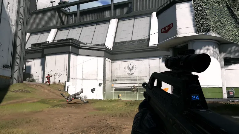Deployable items such as active camouflage, motion sensors, and the versatile Grappleshot also make a return. Built for utility, the Grappleshot lets a Spartan snag a weapon from afar (even while it's midair!), zip to hard-to-reach areas, and pull them straight into the personal bubble of an unsuspecting enemy. While I didn't have too many opportunities to use it, flinging my heavy frame into the air to attempt a tricky shot across the map was exhilarating. Aiming and shooting the new accessory is surprisingly accurate and useful in the right hands. I can’t wait to play around with it more and explore the possibilities it opens in battle. The drop wall, which I did have more experience with, isn’t exciting on paper but saved my life multiple times. Standing behind its tiled barrier gives a shot or two of protection in any given square of the energy field. These tiles provide just enough cover to let you stay alive in a firefight or spot an escape route, though you'll have to be mindful of which side you're on because it only provides one-way protection.