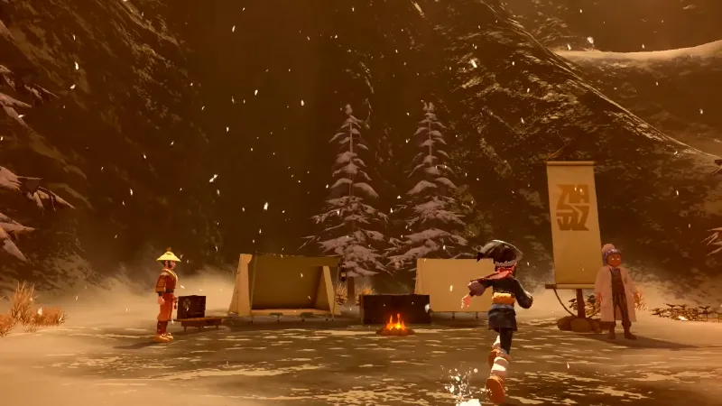 Out in the world, players can find camps where they can presumably rest up their team and access items or other Pokémon.