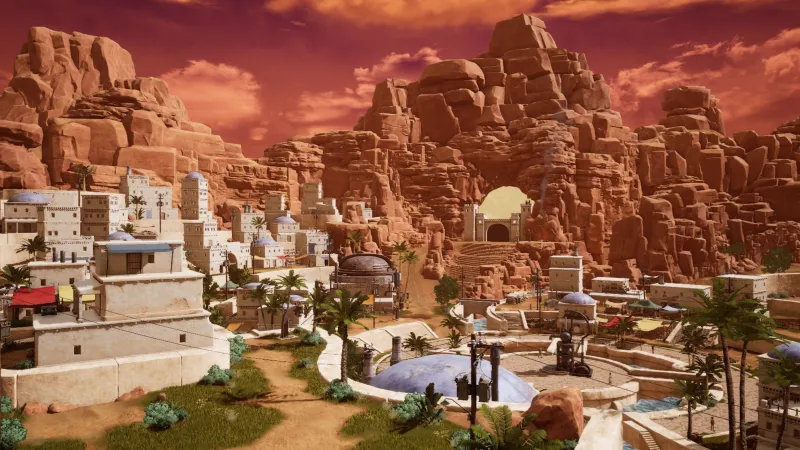 Once my demo concludes, Bandai Namco treats me to an exclusive breakdown of Sand Land’s town-building element. At a certain point in the story, players encounter a small, ruined settlement out in the desert that they are tasked with restoring.