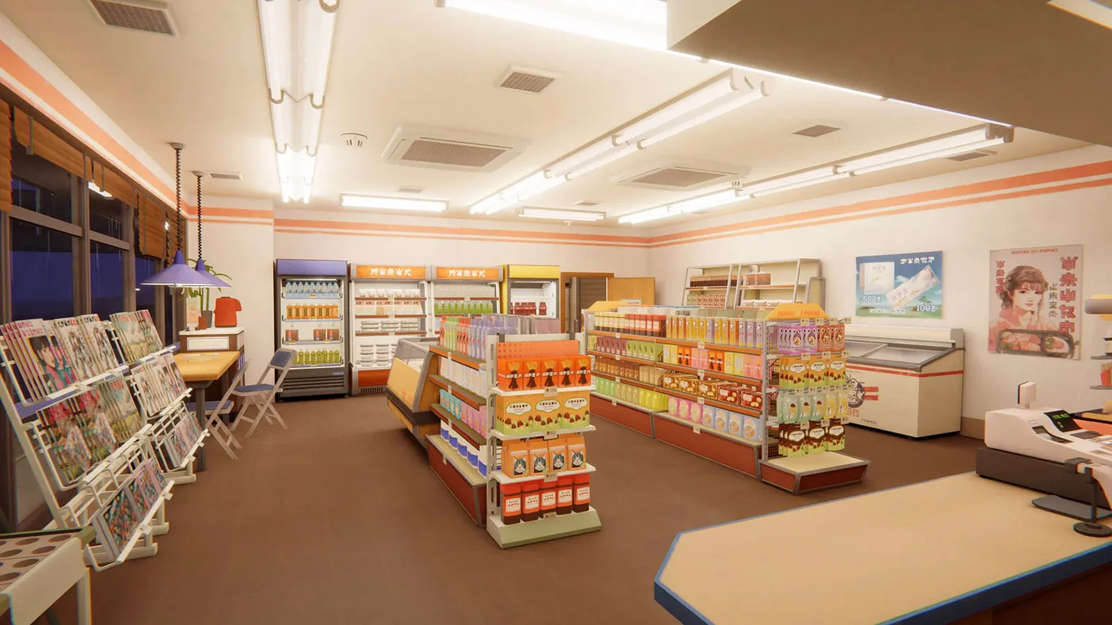 Shen says their conversations led them to develop something “beautiful and cozy, with a positive mood, but also a bit sad,” like mixing the works of Hayao Miyazaki and Makoto Shinkai. Shen tells me Japanese culture describes these mixed sentiments as mono-no-aware, which can be translated as “the sad beauty of mundane things.” After several iterations, Nagai landed on the 1990s konbini, and Shen got goosebumps the second this idea was born. Those goosebumps might have also resulted from Shen remembering the bright and welcoming konbini of Shenmue, one of his all-time favorite games (Nagai Industries is the cover-up name for a Yakuza group in one of the game’s locations).