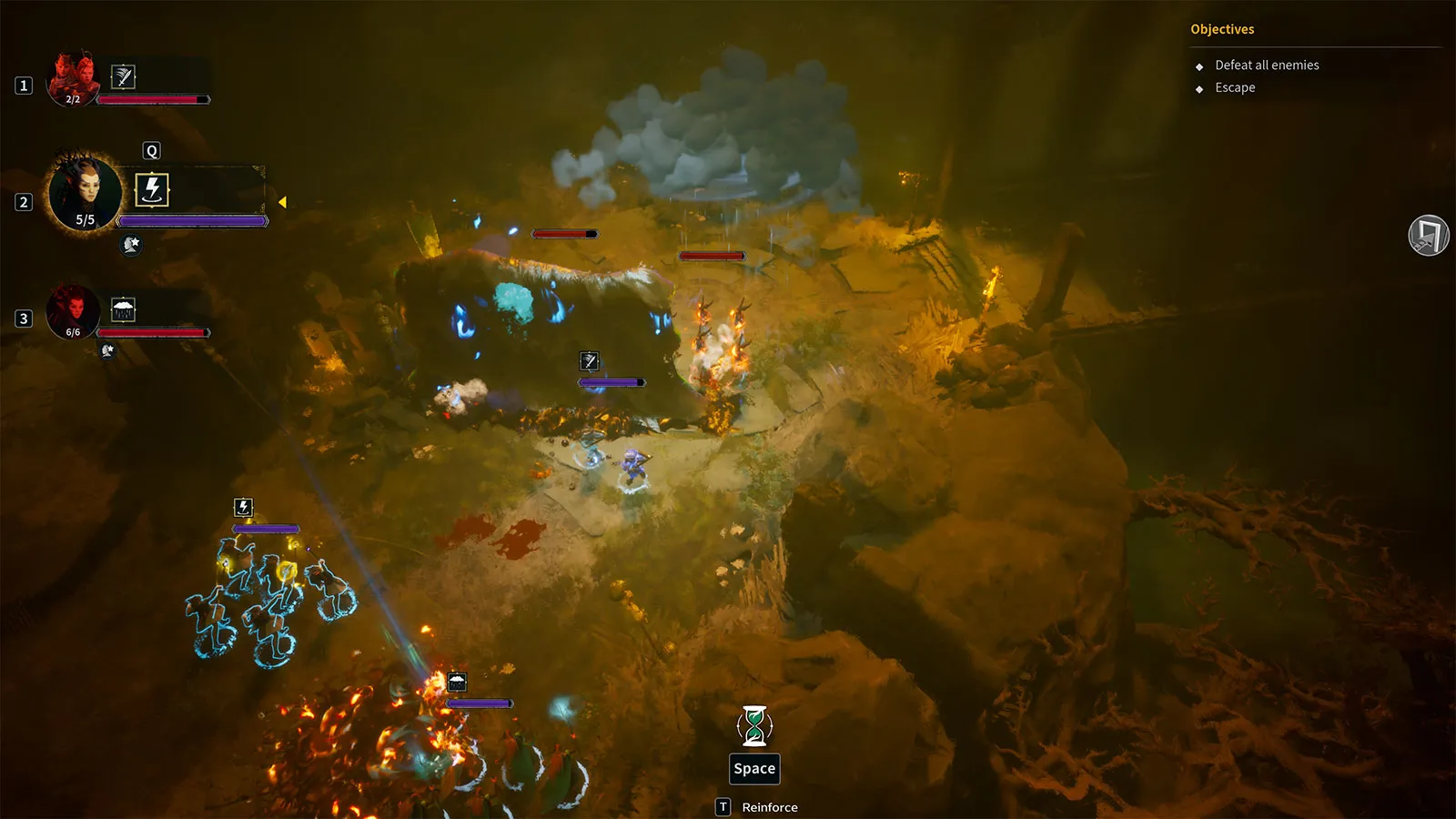 Combat in Wartorn is heavily inspired by classic real-time strategy games, but Hellquist says the team is trying to specifically elevate their favorite parts of the genre and speed up the gameplay. Importantly, however, they also want to let players slow it down when they need to. Pressing the spacebar at any time will slow fighting to a crawl to help assist with decision-making and strategy. “I feel that the Starcraft games and stuff like that – they're awesome, but they get really, really overwhelming, especially for me,” Hellquist says. “One of the things we were trying to design here is [...] more digestible combats where you only have a handful of squads.” The idea is that the combat encounters will feel like a classic RTS game, but with more focused gameplay. It will give combat encounters a little bit of a MOBA feeling in that way.