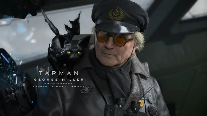 Sporting the likeness of Mad Max creator/director George Miller, Tarman serves as the captain and pilot of the DHV Magellan. He steers the ship through the Tar Network, the black substance BTs emerge from, by shoving his severed, tar-coated arm into a strange port; think of this like using a car key. Functionally speaking, this connection allows for fast-travel to various locations. Tarman is usually seen with his tar-covered winged cat and seems to have a particular love for Moby Dick, one of the many classic books Sam can read in his Private Room.