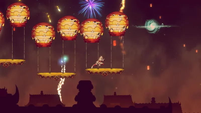 As I move on to the second stage of my play session, it's evident how little of the surface of Oboro Village I've scratched. The Lantern Festival feels like a true action-platforming stage, full of exploration, more intricate platforming, environmental puzzles, and more difficult encounters. Starting out in a swamp with platforms that lower into poisonous waters and various creatures to slay, the stage eventually opens into a stunningly beautiful village with floating Japanese lanterns, extravagant decorations, and fireworks. Oh, and tons of enemies.