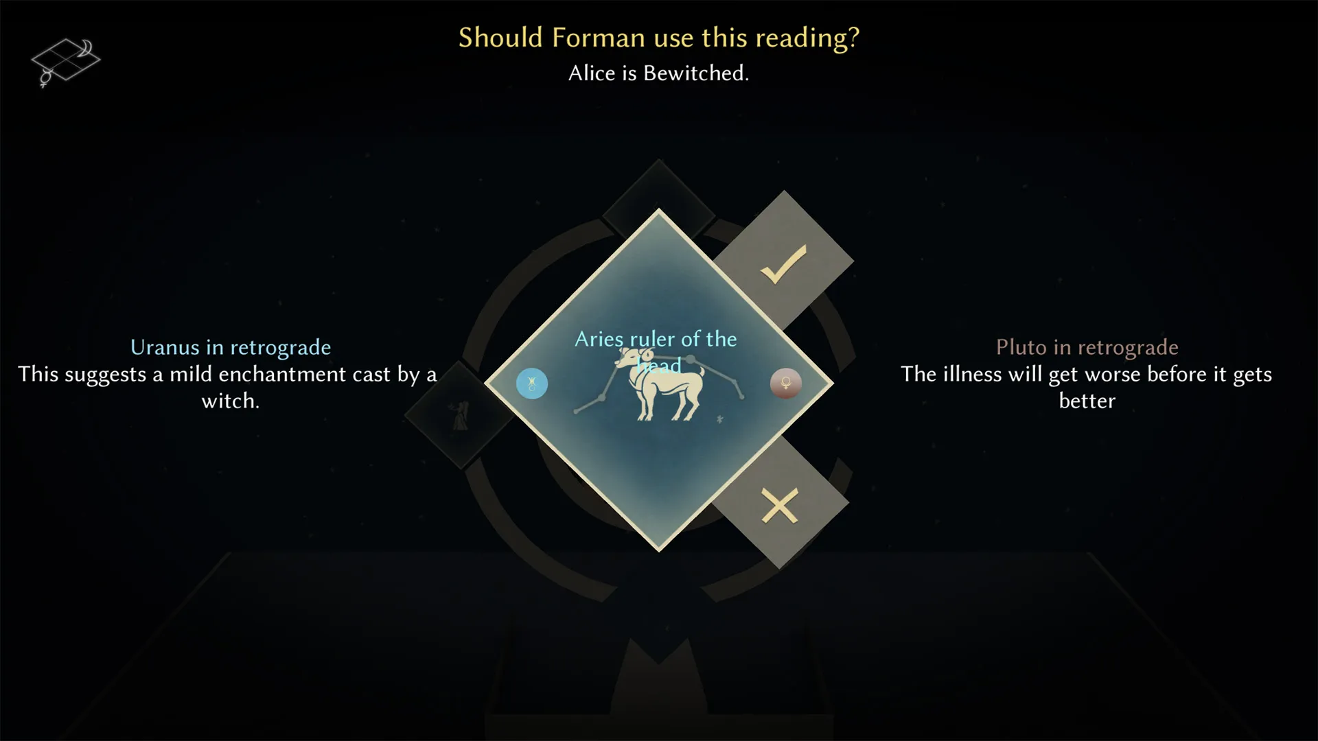 Some of these situations are set in stone because of developer Nyamyam’s desire to achieve a degree of historical accuracy. Outside of Forman’s interactions with real people, the studio says that even the star positions are correct for the dates of his consultations. While that kind of faithfulness requires a lot of ambition and research, it doesn’t necessarily translate to fun. The details surrounding an event may be technically correct, but that isn’t much comfort when your choices as a player feel insignificant.