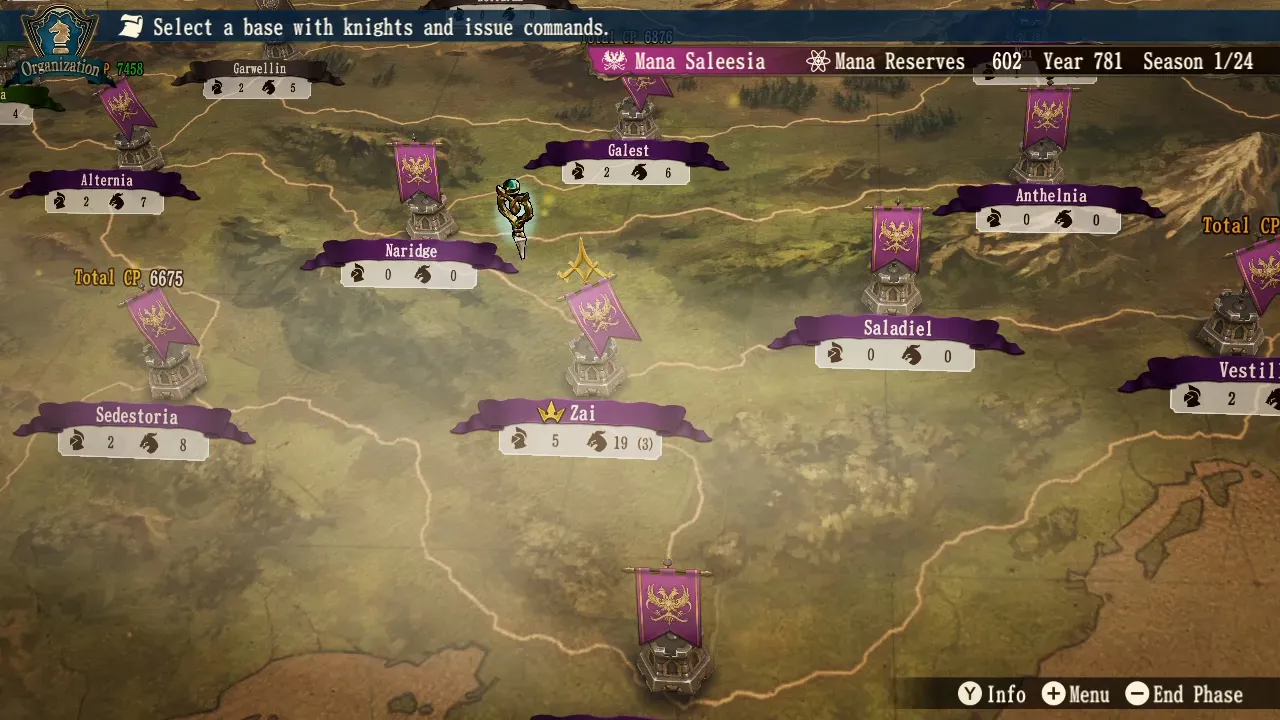 Your goal is to occupy opposing bases, recruit allies, gather new weaponry, and train your combatants – all in the name of total domination. The action is split into organization and action phases for each turn. In the organization phase, you decide where to move your army, who to send on quests for experience or items, and how you want to manage your troops, upgrading their classes and summoning monsters for assistance. These decisions are a balancing act, and I enjoyed deciding when to be aggressive or defensive before even stepping on the battlefield. Positioning is key, as you need to be adjacent to an area to invade it, but you also can’t leave your bases undefended. If you send troops off to do quests, they are unavailable to fight if the base becomes besieged. The challenge comes in needing to do all things, and the push-and-pull is handled well; you can’t advance your power without trying to aggressively take over enemy forts, nor can you ignore quests due to their wondrous rewards.