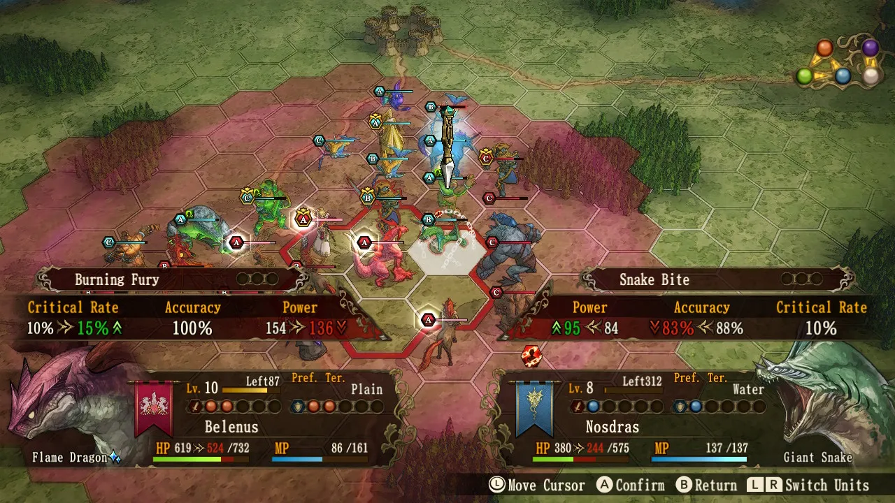 Enemies are rarely pushovers, and completing a battle with your full team intact is rare. A lot of your success comes down to positioning, whether that’s keeping some units together or spaced apart – but which approach is correct often depends on pure luck. This is frustrating, and I can’t tell you how many battles I started over due to an unfortunate turn rather than any flaw in my strategy. The presence of permadeath makes this all the more annoying. You can revive monsters with their levels intact if you have a special item, but these are pretty scarce. When you consider all the time it takes to grind and upgrade these units into something satisfying, losing them can feel downright punishing, and I wish these items weren’t so hard to come to by.