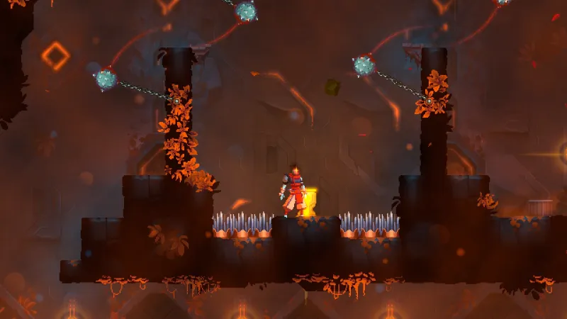 In the opening seconds of play, you learn Dead Cells’ nameless protagonist is designed to handle failure well. He has recently perished, and you get to witness his resurrection. This odd being walks again, but only one thing is different: His head is missing. That vital space is now occupied by a swirling vortex of fire and smoke that can consume cells from other living things. His mission from this moment forward is to kill demons and devour their cells to become more powerful. When he dies, he goes back to square one, but if he can reach a safe zone, the cells he earned carry on.