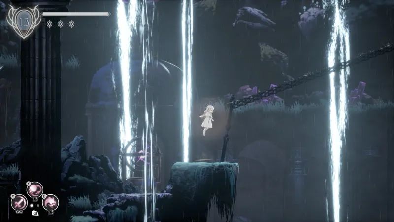 The map is a gigantic network of rooms that had me gleefully rubbing my hands in anticipation for each new expedition. Ender Lilies is divided into gorgeous, visually distinct biomes, from an underground laboratory run by mages to a fairytale-like forest. I had fun exploring most of these areas, save for one poison-filled swamp that was more stress-inducing than entertaining. A fantastic musical piece for each area further sets them apart; I looked forward to revisiting several zones just to hear my favorite songs again.