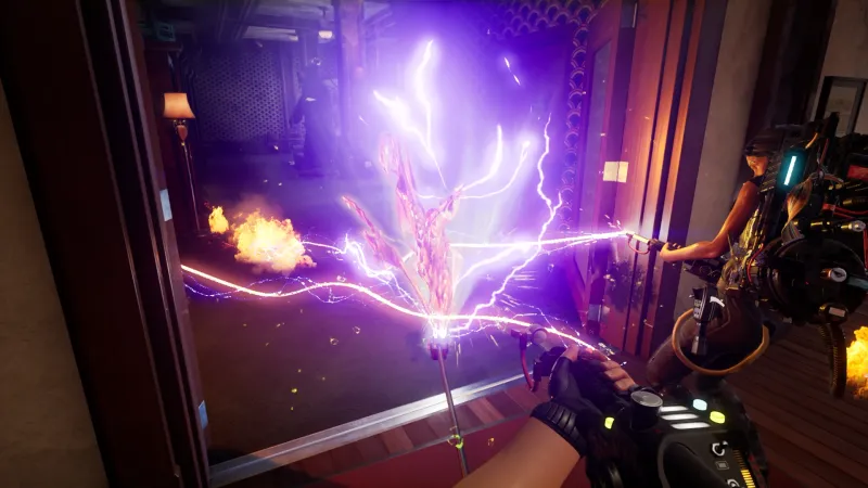 The classic firehouse serves as a multi-use hub when you’re not actively in matches. A handful of cutscenes tell a basic story through the game's early hours. The narrative is nothing to get excited about, but hearing Dan Aykroyd and Ernie Hudson reprising their roles as Ray and Winston is nice. As you level up, you find new cosmetics, gear parts that affect stats, collectibles, and contracts that reward special items and experience bumps. Daily and weekly jobs encourage you to check in regularly as well. I found the steady flow of goodies kept my group dashing to the lockers to try on a new shirt or silly glasses between jobs. And the gear upgrades feel tangible, especially when your particle thrower can let loose for longer without overheating.