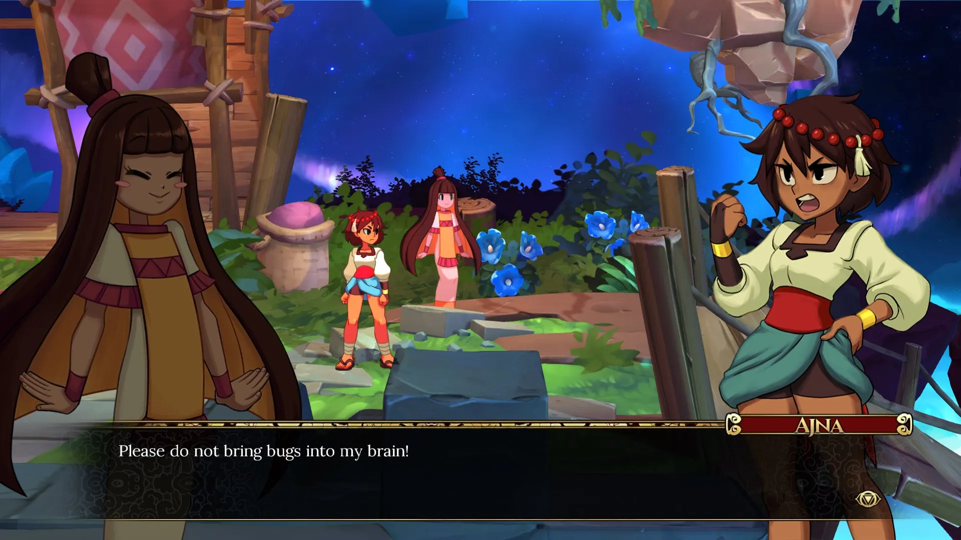 Indivisible has high and low points when you’re fighting or running around, but the cascade of minor inconveniences and technical issues remains consistent throughout. They don’t seem like much individually, they build up over the approximately 25-hour adventure and make the whole journey feel surprisingly unpolished. I had to reload my game when one of my party members got hung up on a platform on her way back to the party after an attack. Another reload was required when I got trapped in a wall. I stood on invisible platforms, got ejected from combat due to environmental flukes (only to receive no XP for my effort), and was unable to talk to the fortune-teller who was supposed to tell me where to go next. Some seemingly important fights are literally over in seconds, while the final boss is a precise and aggravating endurance bout that doesn’t even rely on the standard combat system. Instead of ending on a gratifying note, your big climactic encounter is just a brutal disappointment.