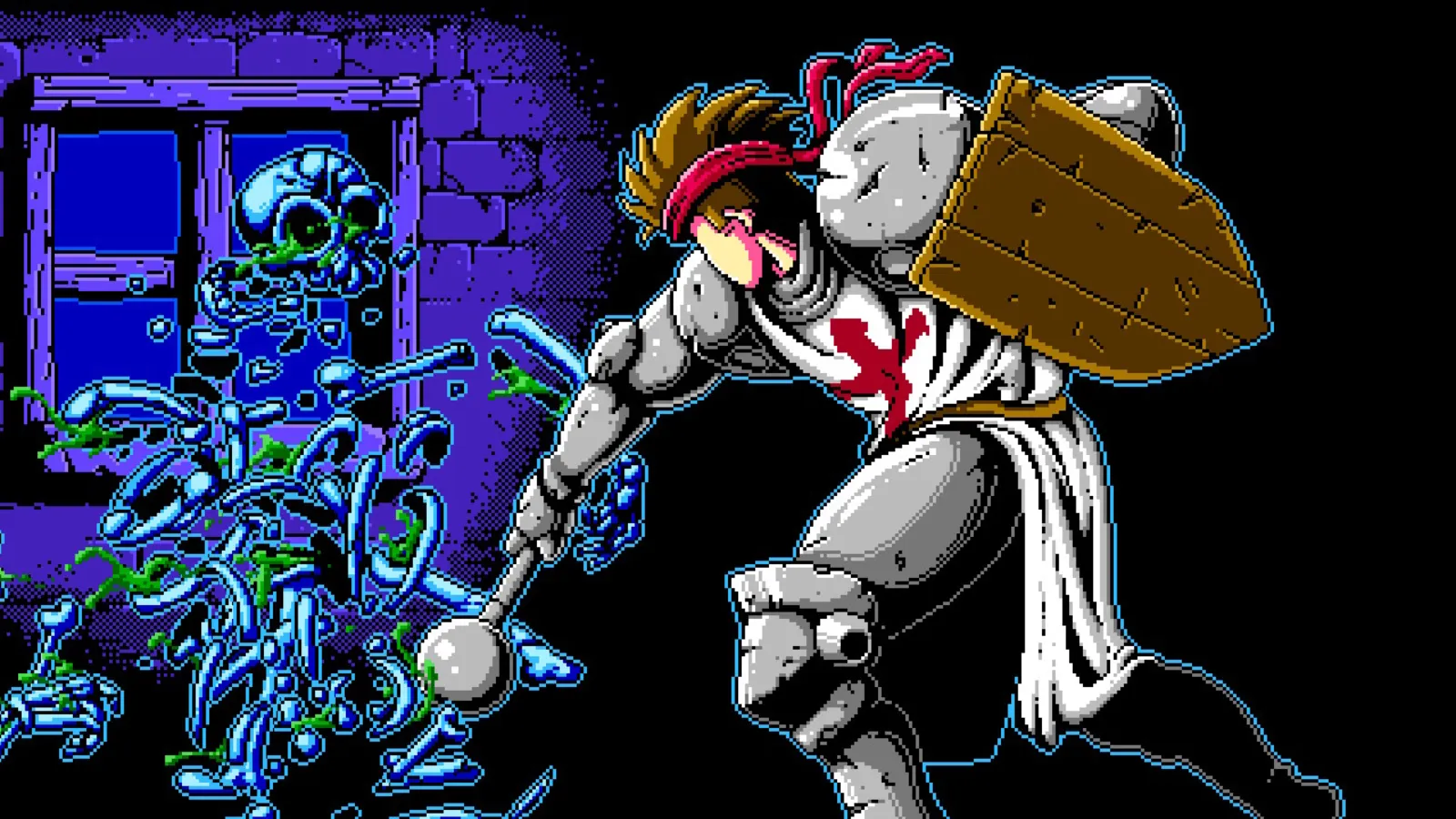 In the first 10 minutes of Infernax, I faced a choice to kill or spare someone who asked to die. I chose to kill them, and without a moment’s hesitation, my character’s mace crushed through their skull. Their face was mangled, with eyes popping out the sides, as the mace destroyed everything between their nose and the cowlick on the back of their head. It is a brutal introduction to the “kill or spare” choice system that presents itself a handful of times throughout Infernax, and it was only a taste of the carnage that’d soon color my crusader’s journey to defeat evil once and for all.