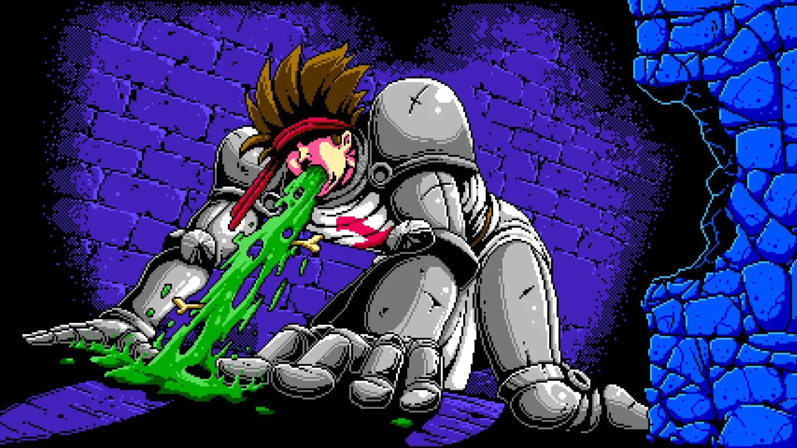 The game’s Castlevania II inspiration is present throughout Darsov and its neighboring areas, and Berzerk skillfully raises the stakes by using troubled citizens like cursed husbands or nightmare-ridden children to revel in the misery that drapes the land. From the start, I bought into Berzerk’s narrative that a devilish figure was bringing dark magic to this otherwise normal and holy place, and not once did it fall short of selling that premise.