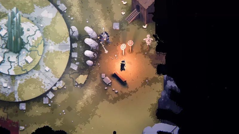 It’s not all doom and struggle, however. Successfully clearing a level or succumbing to an inevitable death brought me back to a tranquil hub called the Sanctuary. The bright environment boasts chirping birds, a healing monument, helpful NPCs, and pettable chickens (which I visited between every mission for good luck). My quest, undying state, and ability to shift the world under my feet are all linked to the relic in this peaceful zone’s center. While a little ambiguous, the narrative is thought-provoking. The characters bound to this miraculous and ominous object ask me to consider the price of its power, even as I happily take advantage of it to continue the looping gameplay.