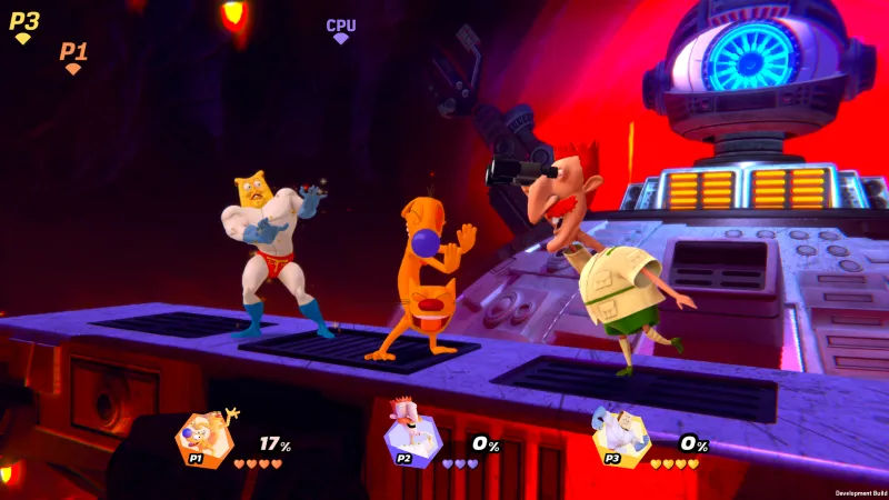 All-Star Brawl brings together different eras of Nickelodeon cartoons to fight on stages based on scenes and locations from various Nicktoons. The roster is not comprehensive, but it is diverse enough and hits several notable eras across its 20 characters. Familiar faces like Ren and Stimpy and Rugrats’ Reptar mix it up with Nigel Thornberry, Zim, and Danny Phantom. Current favorites such as Lincoln and Lucy Loud hold down the fort for newer toons. Still, the cast also has a few notable big names: Spongebob Squarepants and friends, a handful of Ninja Turtles, and the duo of Avatars, Aang and Korra, bring some much-appreciated star power to the mix.